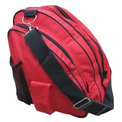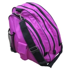 This deluxe skate bag has two large compartments for ice skates or roller blades, a section for accessories, and extra pockets for a water bottle and cell phone. The durable canvas bag includes an adjustable shoulder strap. Available colors – Black, Hot Pink, Purple, Red, Royal, Silver, Berry, and Turquoise.