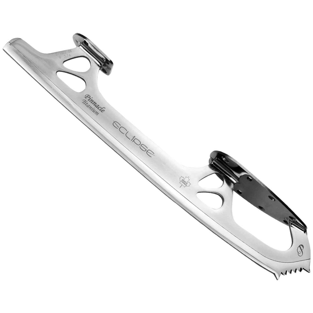 The ALL NEW lightweight Eclipse Pinnacle Titaniumâ„¢ skate blades have a 100% titanium alloy body with a stainless steel runner. At 45% lighter than carbon steel alloys, titanium offers the highest strength-to-weight ratio of any metal. It is 60% denser than aluminum and twice as strong. The Swedish stainless steel runners offer precise edges which maintain long blade life and resist rust or corrosion.