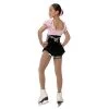 Darling “ladder-back” dress in warm tones is accented with our aubergine dot print. Square neckline with cap sleeves dips to low back with contrast dot print. Adorable on the ice! Italian matte tricot base with flat front skirt and contrast stretch illusion mesh underskirt. Too fun!
