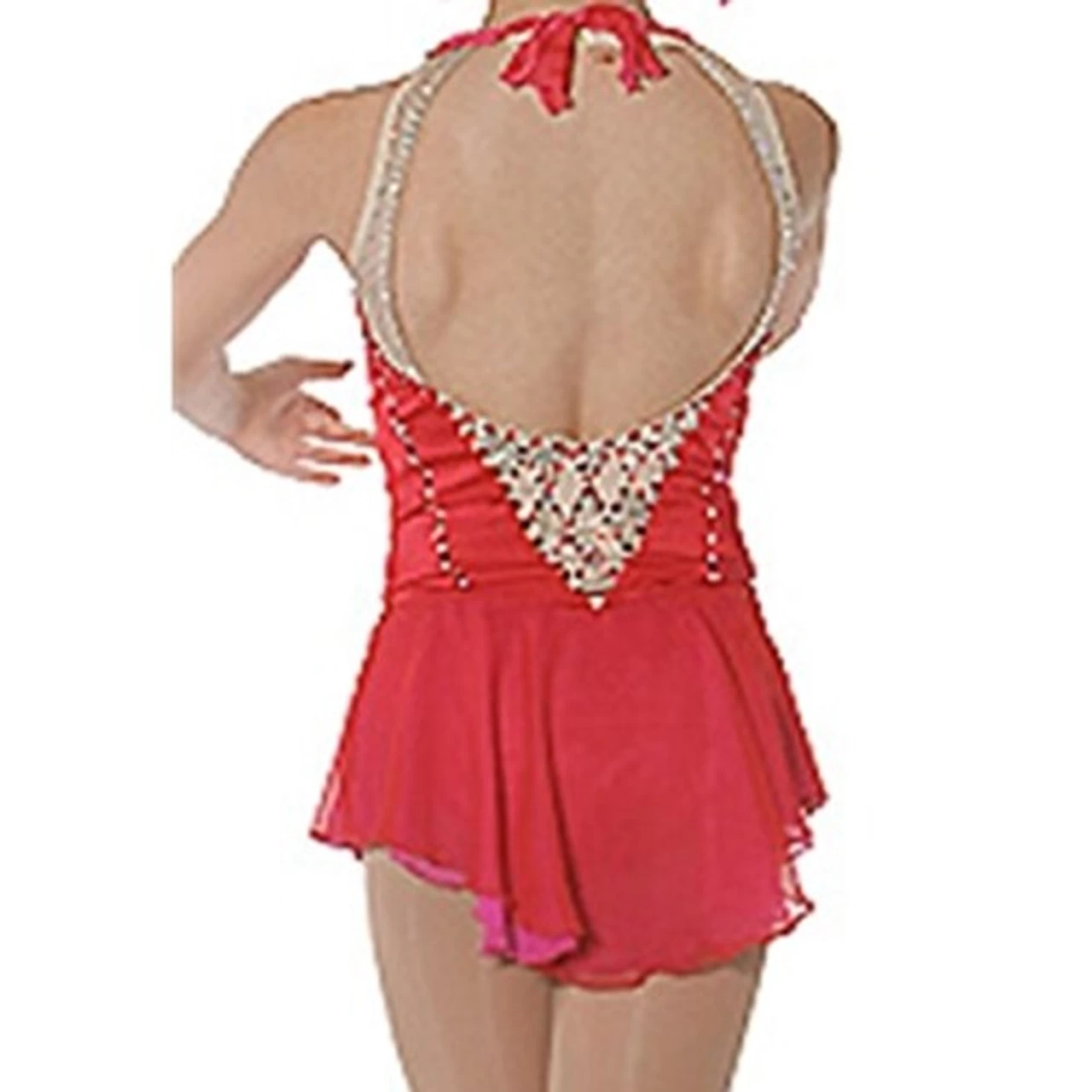 Princess seamed bodice softly gathers around neck with ties. (Nude insert lined for modesty.) Plunging back seamed bodice is supported with nude mesh. Chiffon skirt shown in photos has been replaced with double-layer stretch illusion mesh. Nude strap under tie for support.