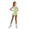 Italian matte tricot bodice with stretch illusion mesh neckline inserts—hooks at back of neck. Skirt gracefully splits to hip with our newest hand-cut scalloped edge–and, dipped-dyed contrast color. Every color combination is just beautiful in this sophisticated dress. The styling will definitely catch the judge’s eye!