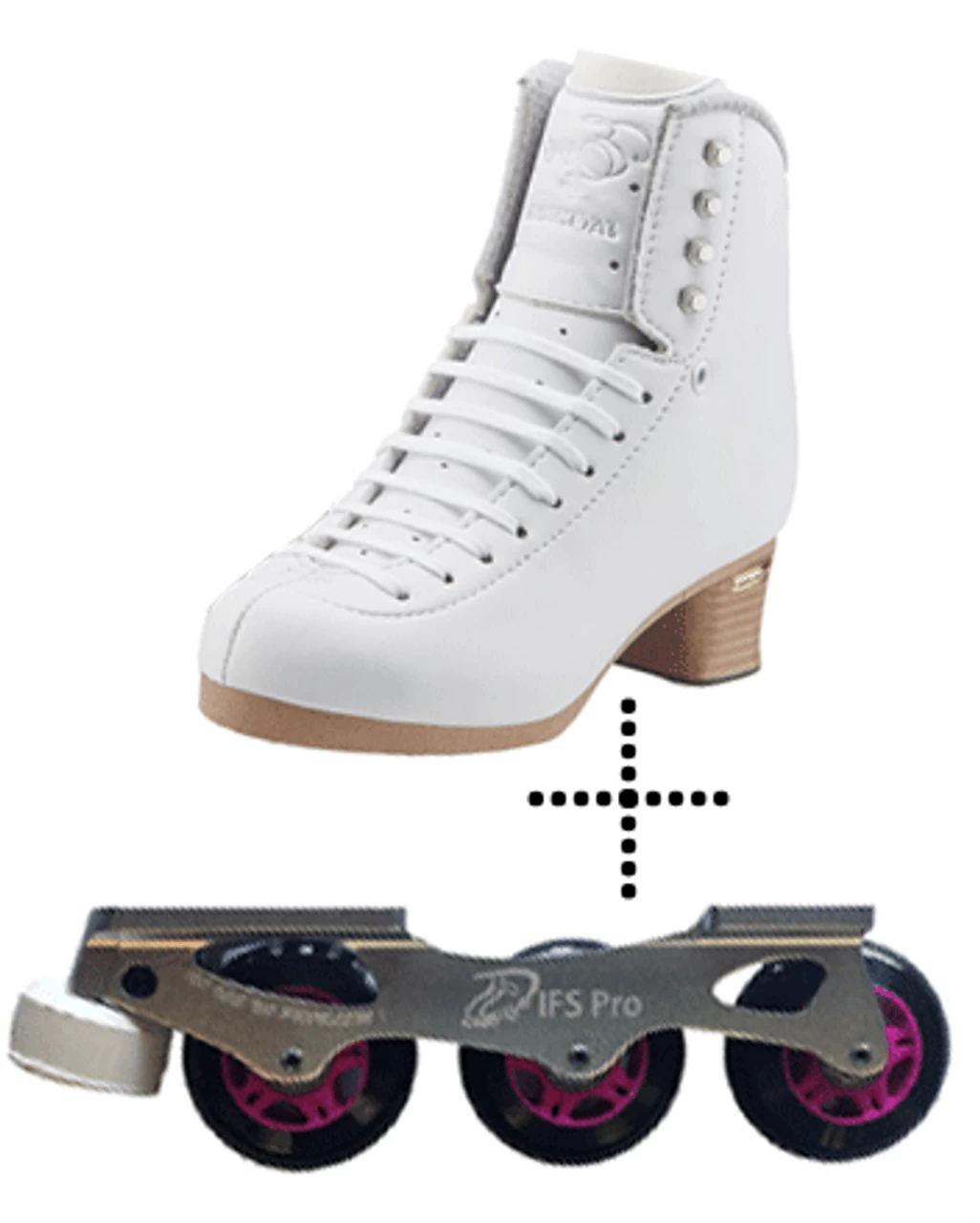IFS Pro wheel frame set is specifically designed for the recreatrional to intermediate freestyle skater and intermediate to pro level dancer. This frame is equipped with a highly finished powder coated aluminum and evenly spaced wheels for better balance, moves, edge jumps and spins. Comes equiped with ABEC 9 bearings, adjustable height toe pic and Outdoor wheels.Â