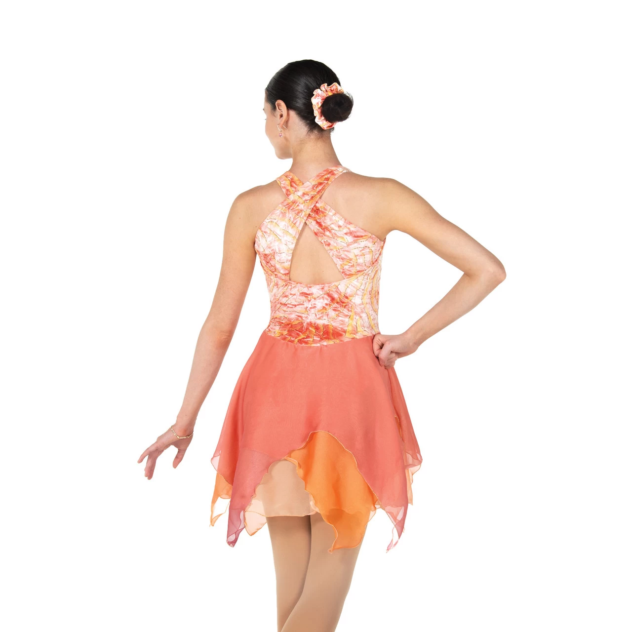 Love the rosy tones, the embossed texture of the crushed velvet, the silky, layered linen chiffon skirt, the shaped front with a sprinkle of gold, and the crossed and tapered back straps. A flattering and feminine style. Lined.