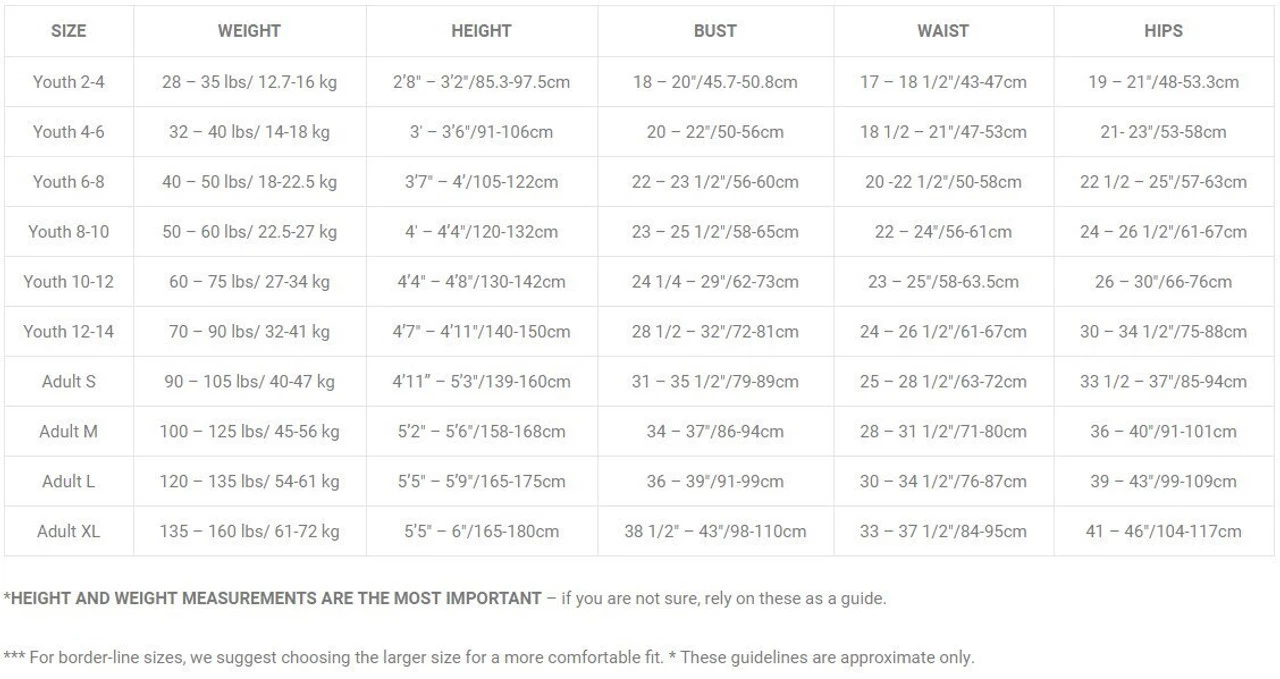 | Size | 6-8, 8-10, 10-12, 12-14, Adult Small, Adult Medium, Adult Large, Adult XL |