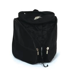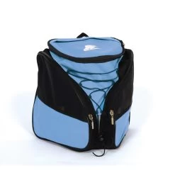 Mesh topped side compartments for skates plus a roomy middle compartment that holds lots of gear and fits a helmet too. Without a helmet you can put skates in the middle compartment and stash damp skate guards & gloves in the side compartments. There are lots of organizational possibilities! Reinforced rigid bottom protects against sharp skate blades.