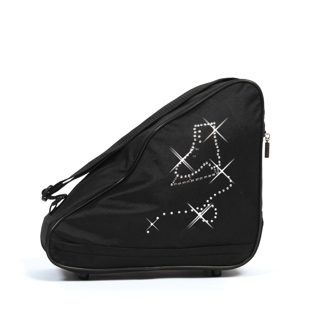 Triangle shape with reinforced bottom, a shoulder strap and crystal skate silhouettes on both sides.