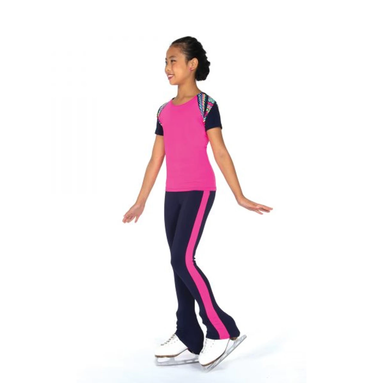 Cozy Jerry’s S116 Navy Blue Fleece Kaleidoscope Leggings with an under-the-heel fit, side stripes in pink and a fan of kaleidoscope print at the lower back.