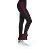 Black fleece legging pants with an elastic waist and an hourglass design in bright complementary accent colours along each leg for a long, slim look.