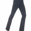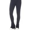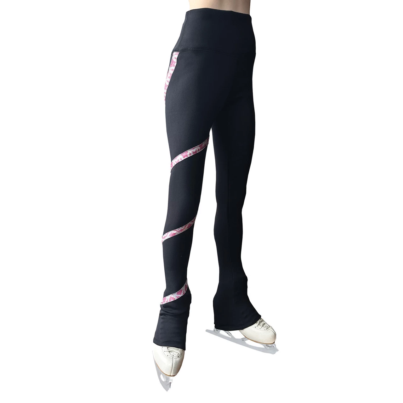 Cozy black fleece leggings with a high waist fit, wide comfort waistband, under-the-heel legline and a swirl of holographic ribbon spiralling down one leg.