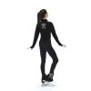 Swooshing crystal skate design with blue and silver crystal snowflakes following along the back waist. This style is a heel pant made of warm fleece.
