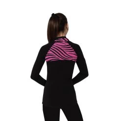 Black power fleece jacket with long knuckle length sleeves and thumb holes and flocked and glittered tiger print hologram back panel, shaped front and collar backing. Full front zipper.