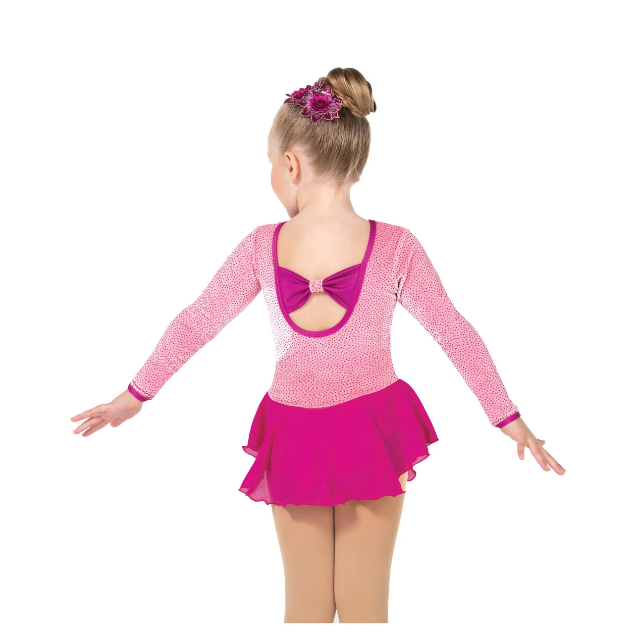 Dresses with a bright and cheerful disposition, featuring all-over pink glitter and deep pink trim around the scoop neck, in the back bow and deep pink georgette skirt.