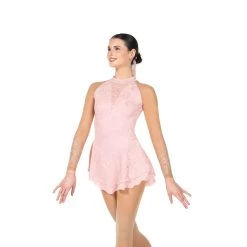 Lovely glitter lace dresses with a lined V-shape front and a high neck with a back zipper. Long sheer mesh sleeves accented with sparkling crystals and a double skirt of lace over matching georgette. Lined.