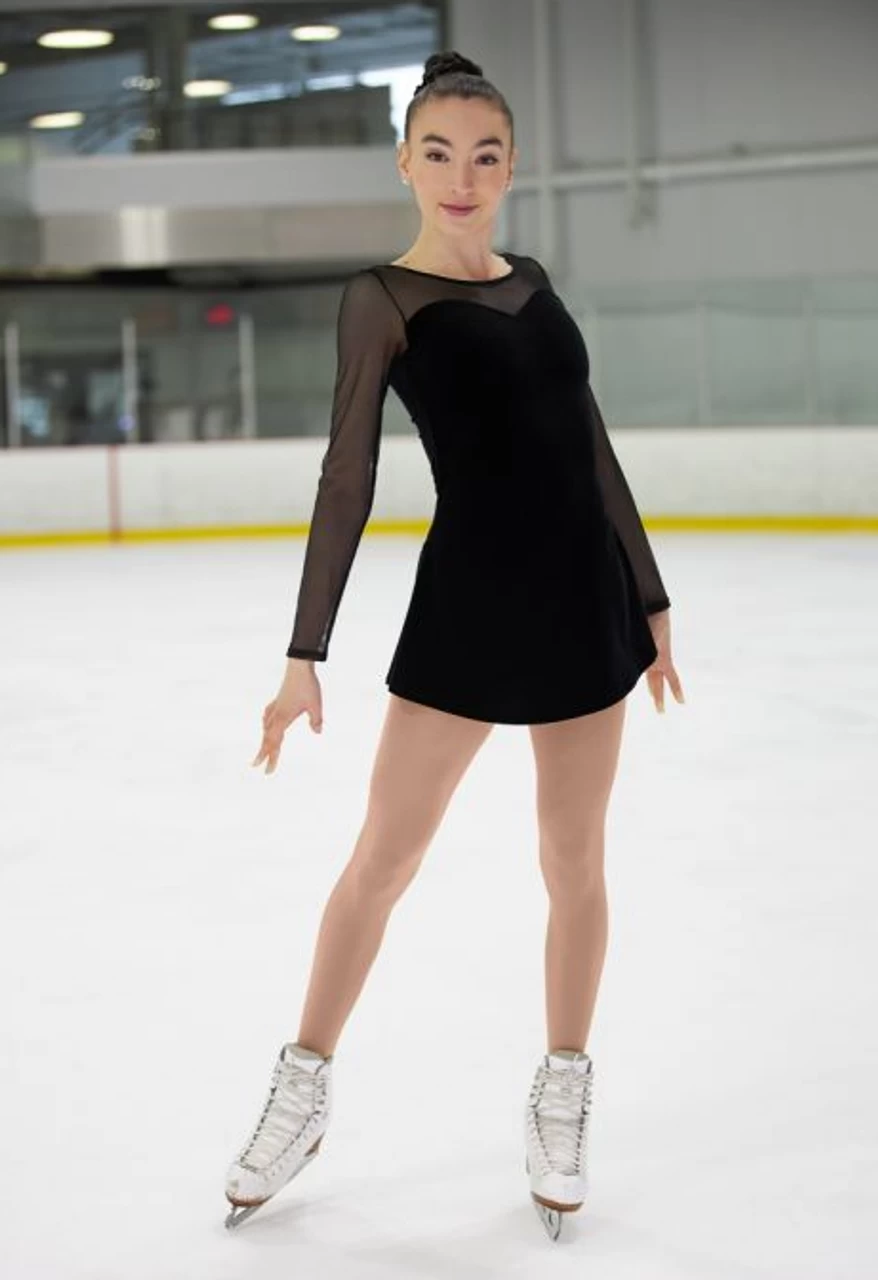 Plain velvet dress with mesh neckline and sleeves as well as a box skirt featuring slits on both sides. Hair tie included Fabric: 90% polyester, 10% elastane Mesh: 82% nylon, 18% elastane