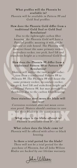 Due to the lightweight carbon fiber housing, the Phoenix Gold will have a Parallel profile; meaning it will not be tapered or side honed. The Phoenix will however boast the same primary rocker, secondary rocker, toe-pick, hell lift and stanchion height as a traditional Gold Seal.
