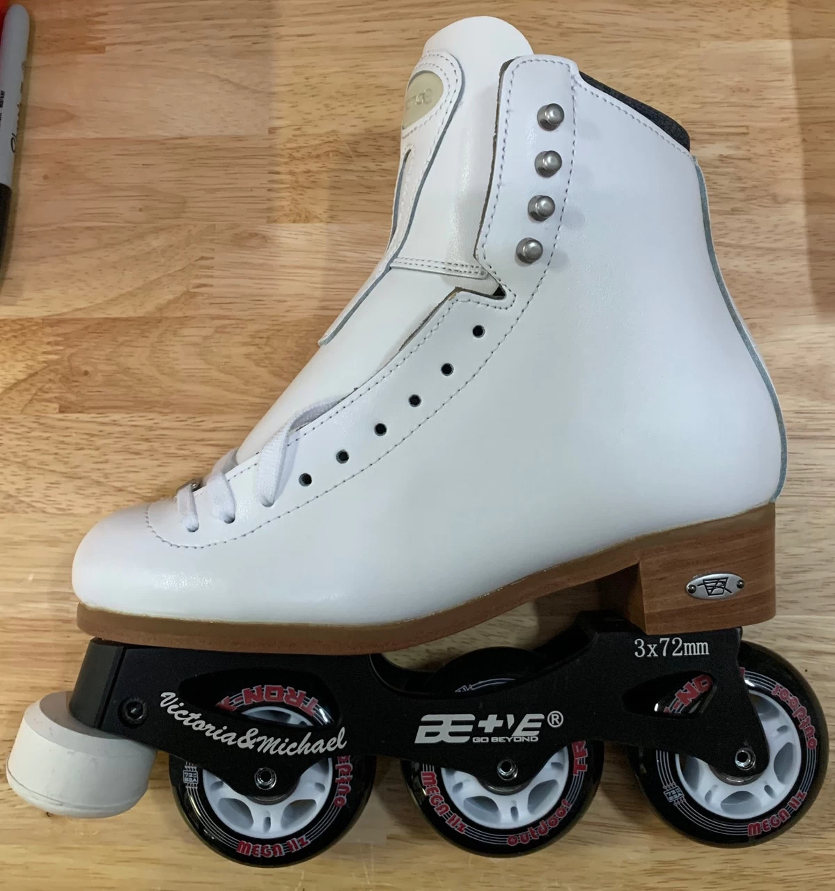 IFS PRO 3 wheel frame set is specifically designed for the recreatrional to intermediate freestyle skater and intermediate to pro level dancer. This frame is equipped with a highly finished powder coated aluminum and evenly spaced wheels for better balance, moves, edge jumps and spins. Comes equiped with ABEC 9 bearings, adjustable height toe pic and Outdoor wheels.Â