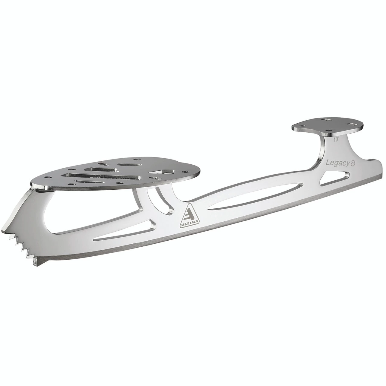 The Legacy 8 has a unique lightweight design with a 8 foot rocker. The blade was developed in response to the demand by top coaches for an intermediate blade with a 8 foot rocker and cross cut toe picks. This blade is suitable for all single level jumps including the axel.